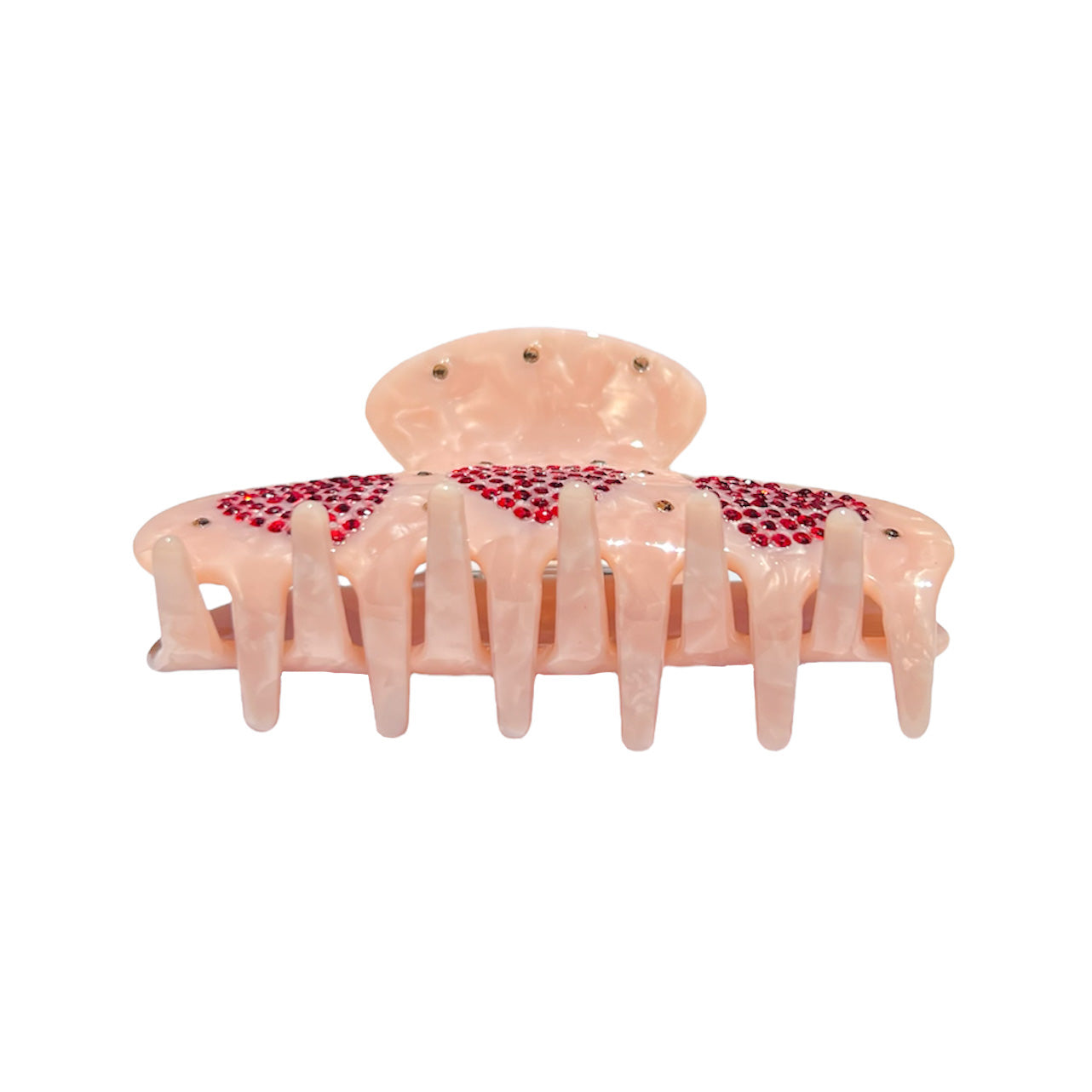The cutest claw clip you will ever see! The Emmy Clip is the most charming rose pink, featuring blinging rhinestones. Ideal for a lovely half-up half-down do! Perfect for all hair types!